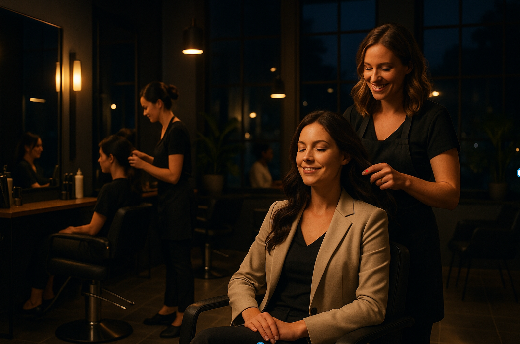 夜間美容室のメリットは多岐にわたります。まず、顧客にとっては「時間の自由さ」が最大の魅力です。日中の予定に縛られず自分の都合で予約できるため、ビジネスパーソンにとって非常に便利です。